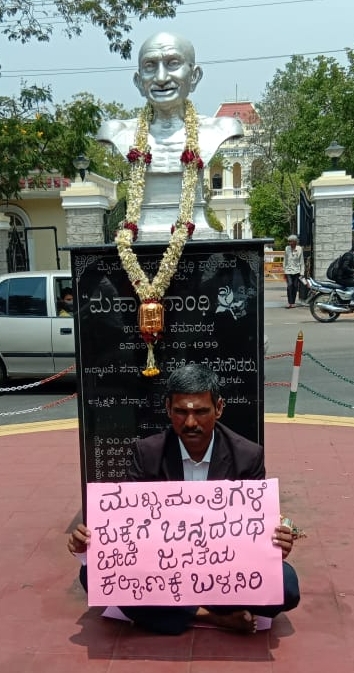 Mysuru: Advocate M Ramakrishna staged a lone protest against the reported plans of chief Minister H D Kumaraswamy to donate...