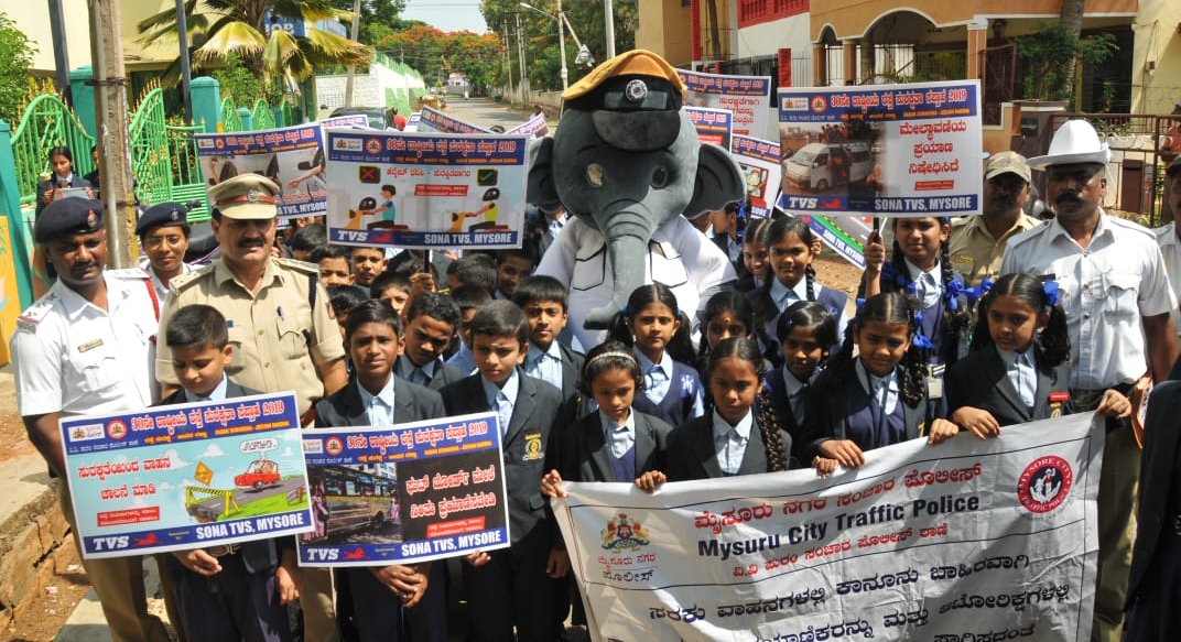 Mysuru: Students of Mahajana Public School on Monday walked the extra mile along with the city police to create awareness...