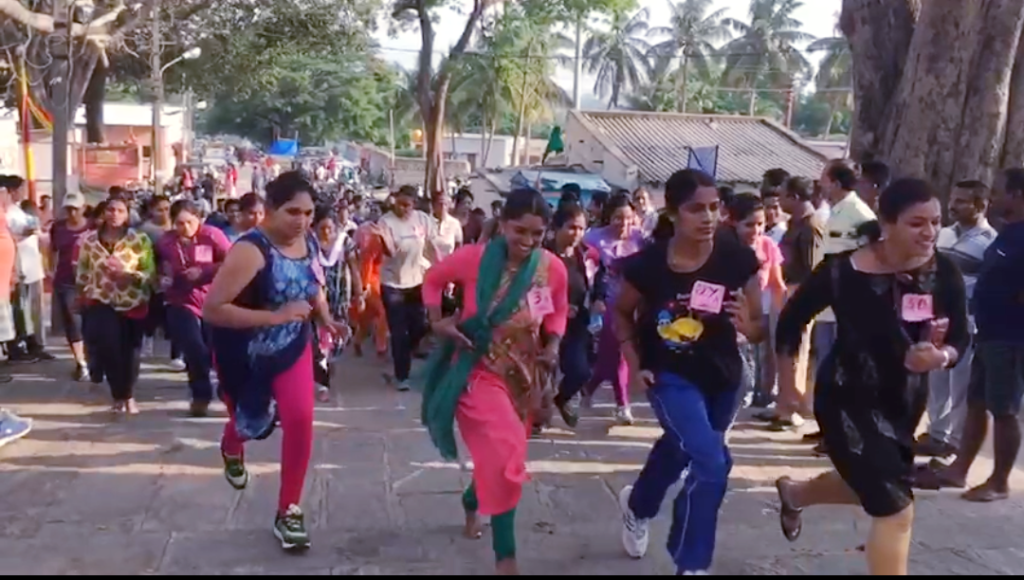 Mysuru: Hundreds of women on Sunday vied with each other to climb the top of Chamundi Hill. Abhyudaya Mahila Samaja,...