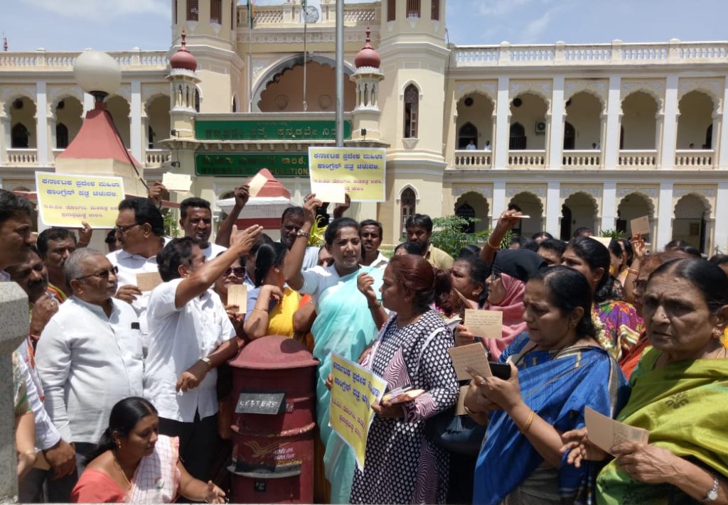 Mysuru: Hundreds of women workers of the Congress party have launched a post card campaign to demand central election commission...