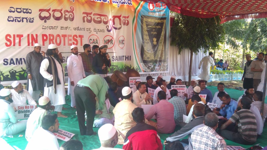 Mysuru: Samvidhana Samrakshana Samiti launched a two- day sit- in protest at Milad Park on Ashoka Road in the city...