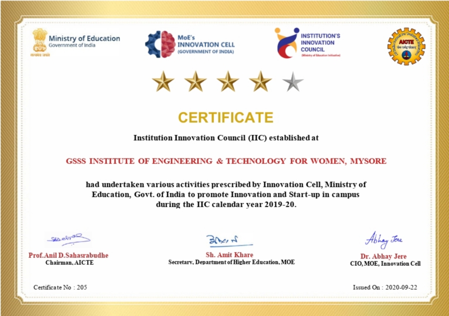 Mysuru: GSSS Institute of Engineering & Technology for Women (GSSSIETW), Mysuru has been awarded 4-star rating for 2019-2020 released by...