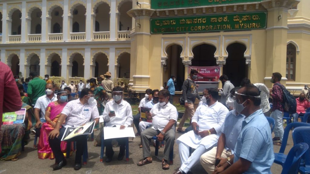 Mysuru: Pourakarmikas led by Corporators irrespective of party have launched a protest in support of Mysuru City Corporation Commissioner Shilpa...