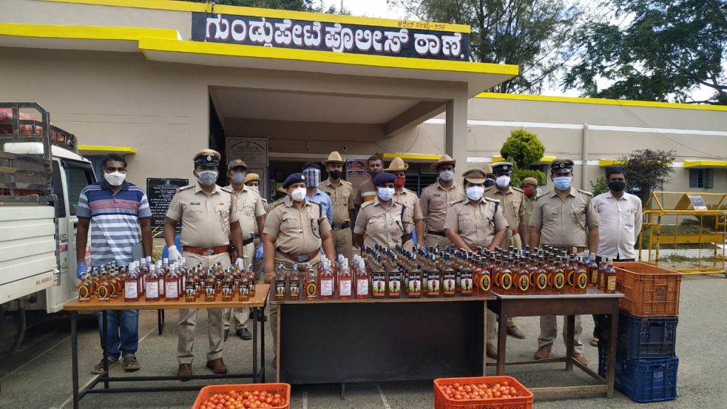 Chamarajanagar: A man from Kerala who made an alleged bid to transport liquor bottles stashed amidst vegetable crates was busted...