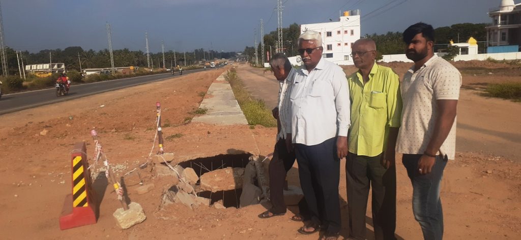 Mandya: Concrete slab of box type storm water drain on 10-lane Mysuru- Bengaluru Expressway near Gejjalagere in the district has...