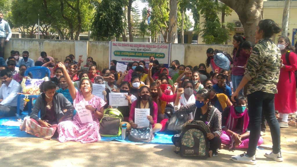 Mysuru: Demanding resumption of classes, Government Maharani's College students joined the guest lecturers on protest near Deputy commissioner's office in...