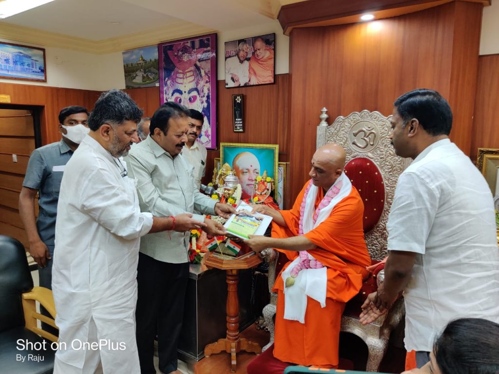 Nagamangala: KPCC President D K Shivakumar has invited Adichunchanagiri Mutt Seer Sri Nirmalanandanatha Swamiji to flag off padayatra planned by...
