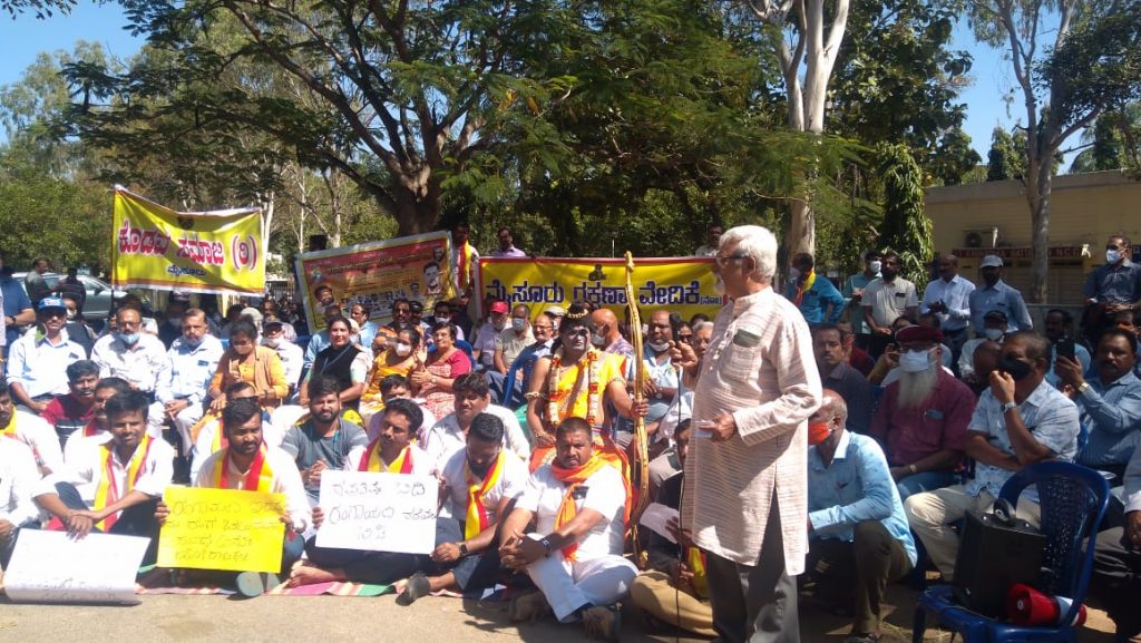 Mysuru: Alleging ignorance with the organisers of exhibition at Karnataka Exhibition Authority ( KEA) grounds neglecting Kannada language, pro- Kannada...