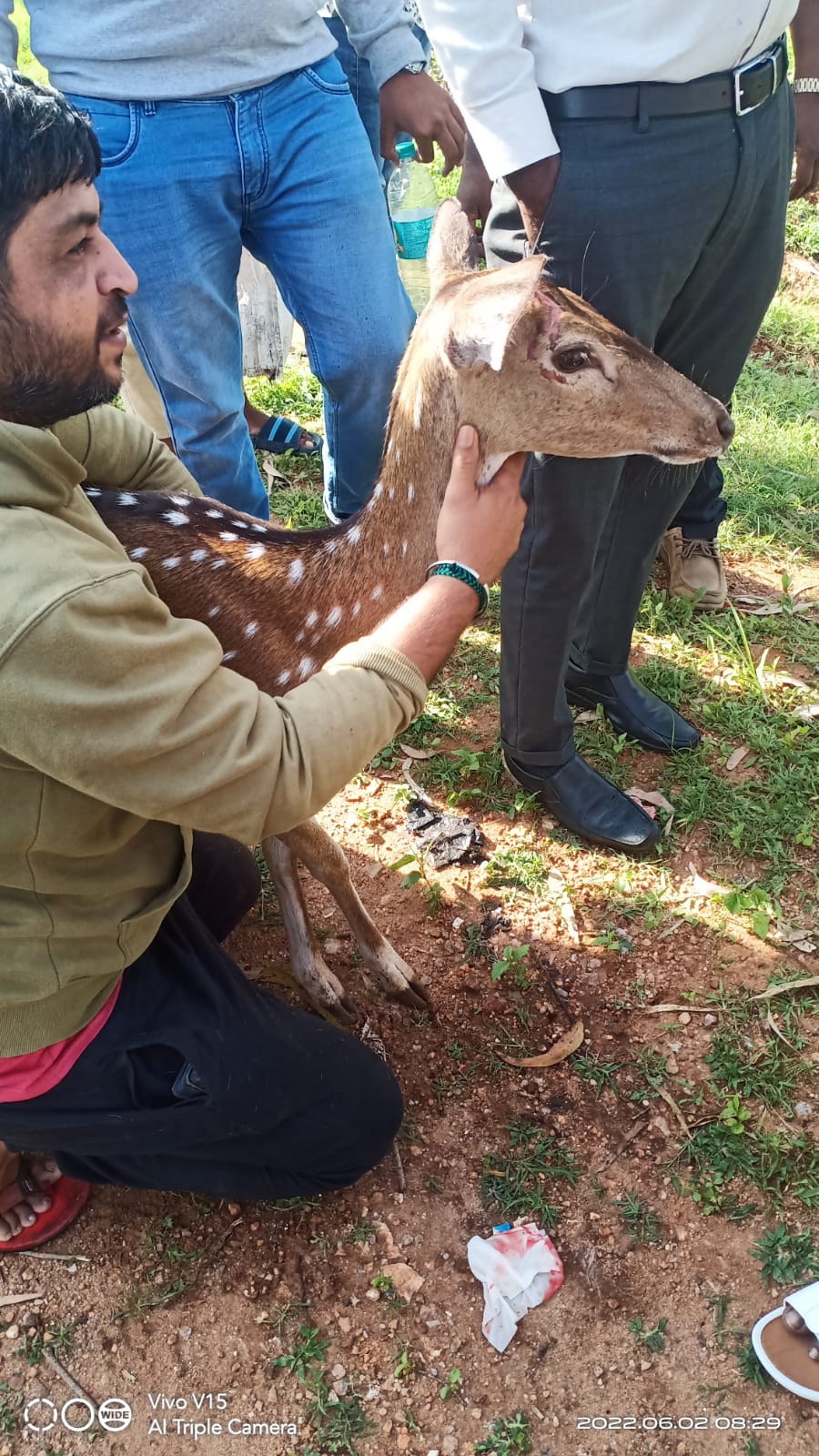 Mysuru: A spotted deer suffered injuries after it was allegedly hit by an unidentified vehicle in Arabitittu forest area on...