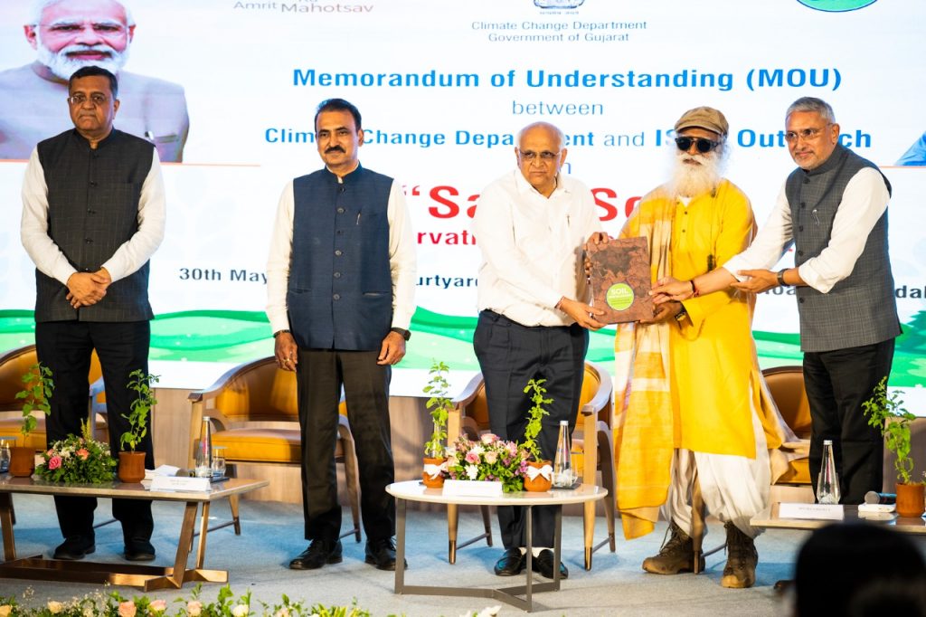 Ahmedabad: The Government of Gujarat signed a Memorandum of Understanding (MoU) with Isha Outreach to conserve soil in the state...