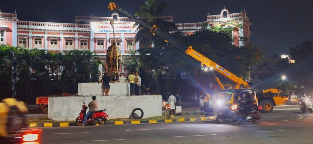 Mysuru: Following the installation of the statue of previous pontiff of Suttur Mutt Sri Rajendra Mahaswamiji at Shivarathri Rajendra Circle...