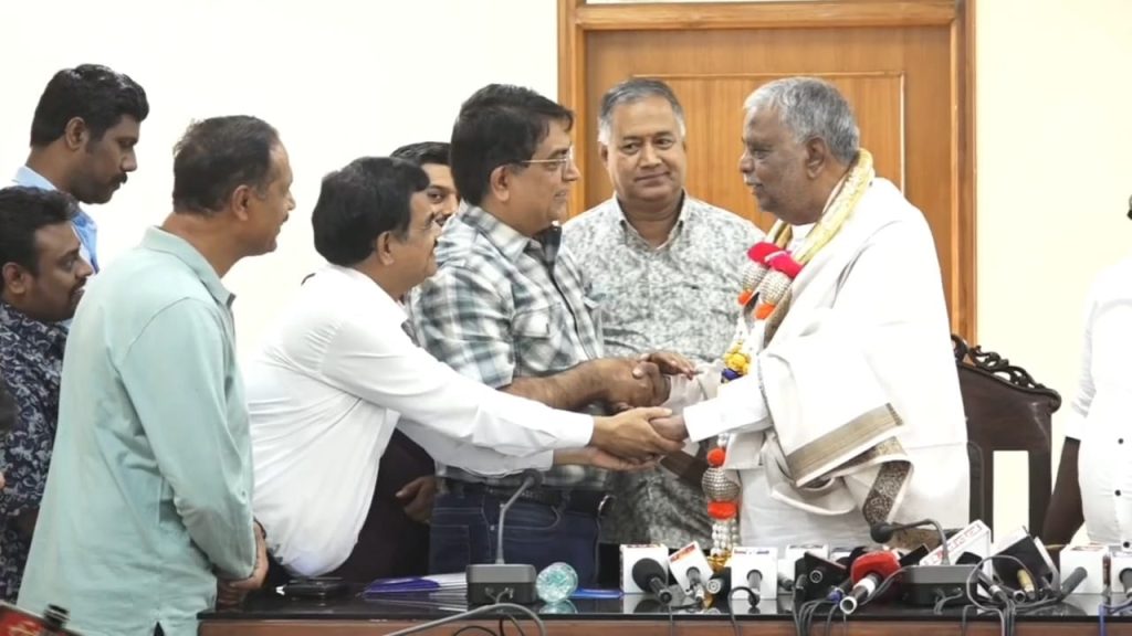 Mysuru: Former IPS Officer and BJP leader Bhaskar Rao called on senior leader and Chamarajanagar MP V Sreenivasa Prasad at...