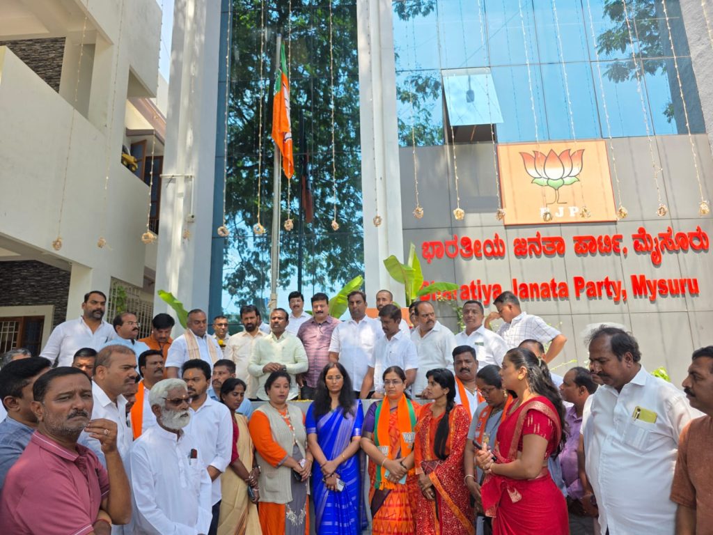 Mysuru: The 46th Foundation Day of BJP was celebrated at City BJP office in Chamarajapuram on Sunday. MLC N Ravikumar,...