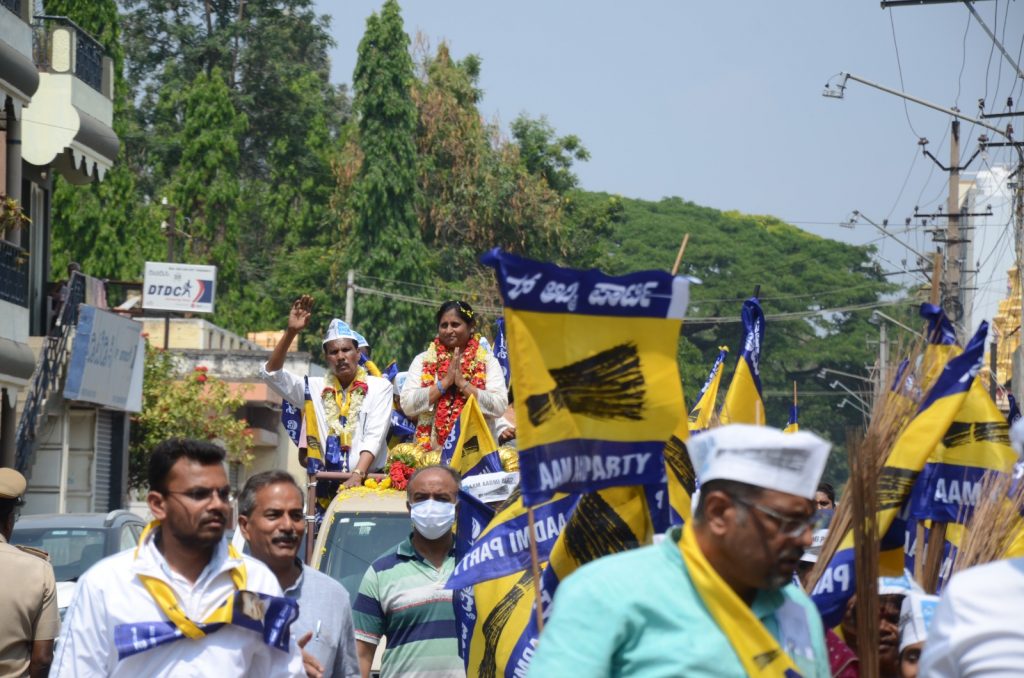 Malavika Gubbivani’s husband Raghavendra Udupa, AAP Mysuru District President Rangaiah, Party colleagues Usha Sampathkumar and K M Shivakumar, according to G R Vidyaranya AAP Mysuru media in charge.
