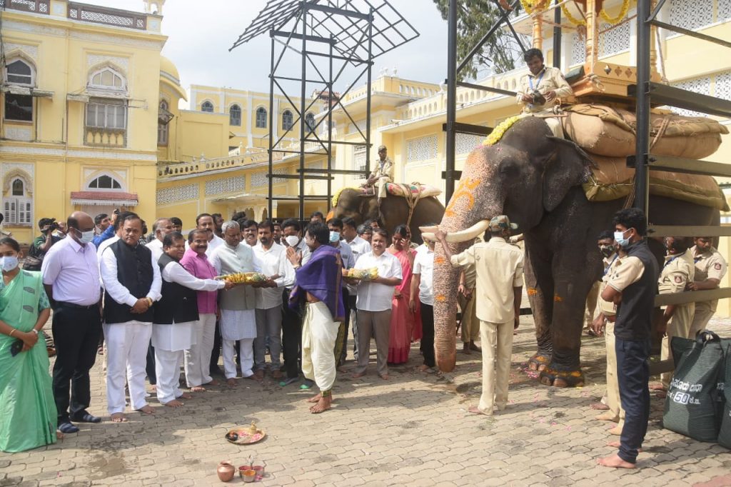 Earlier Dasara elephants including the howdah elephant were taken on a dry run with wooden howdah mounted on their back, up to Bannimantapa. Now, due to Covid restrictions, the practice is also restricted to palace premises.