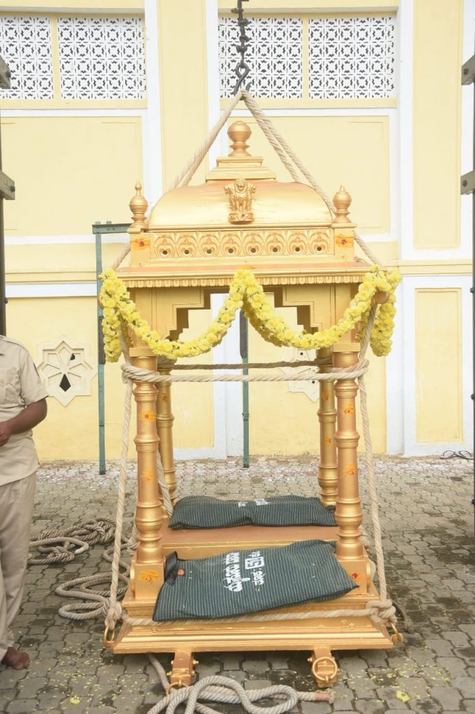 On Friday, he carried the wooden howdah weighing 750 kg with sand bags and walked for about 200 metres stretch within Mysore Palace precincts.