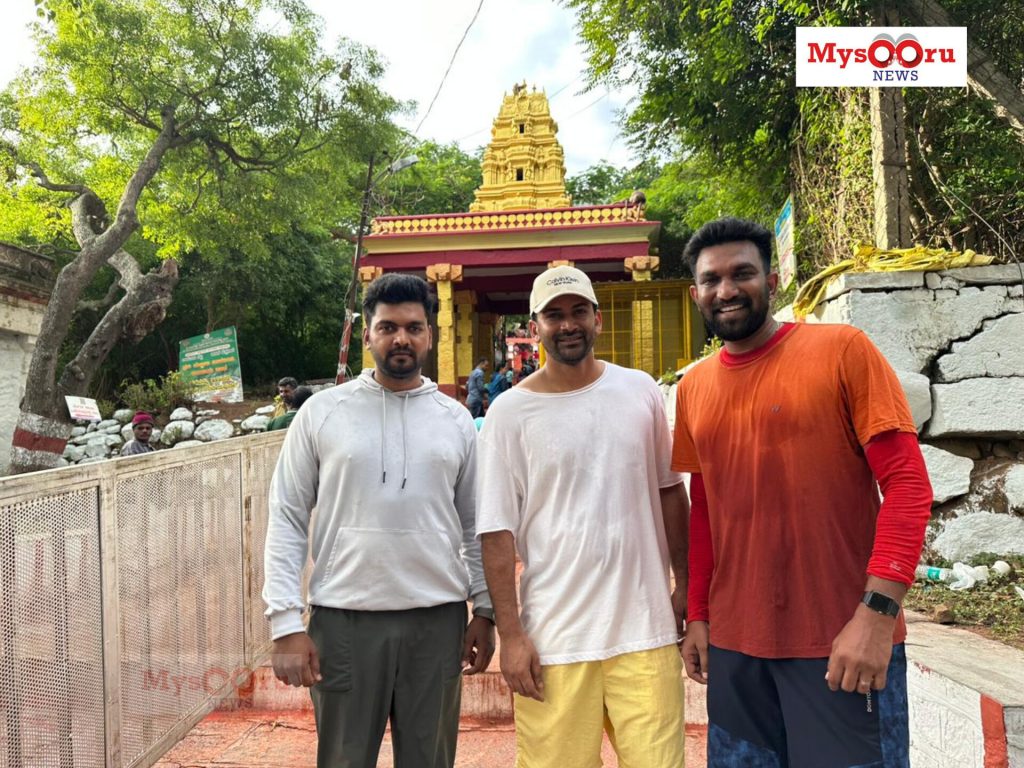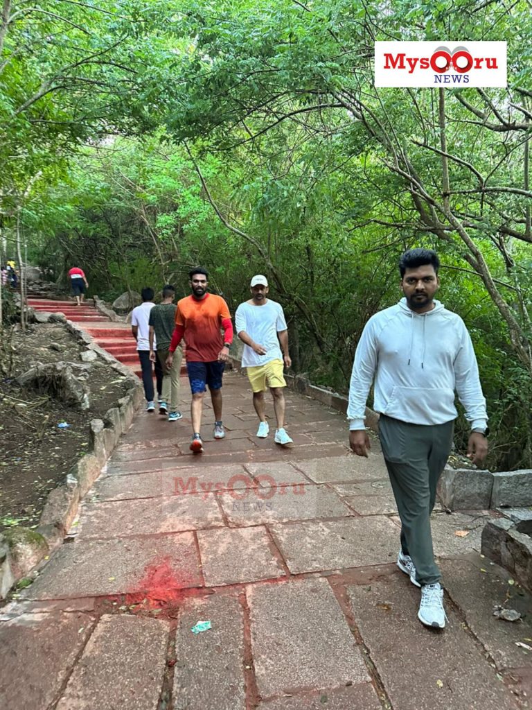 Mysuru: Sandalwood actor Daali Dhananjaya visited Goddess Chamundeshwari temple at Chamundi Hills by climbing 1000 steps to the shrine on Saturday.