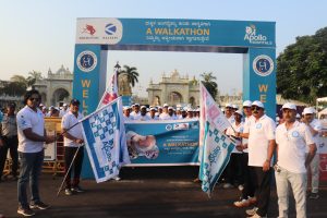 The walkathon was flagged off at the North Gate of Mysore Palace, in front of Kote Anjaneya Swamy Temple.