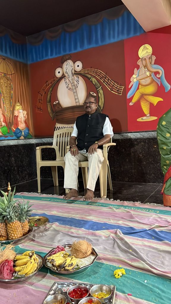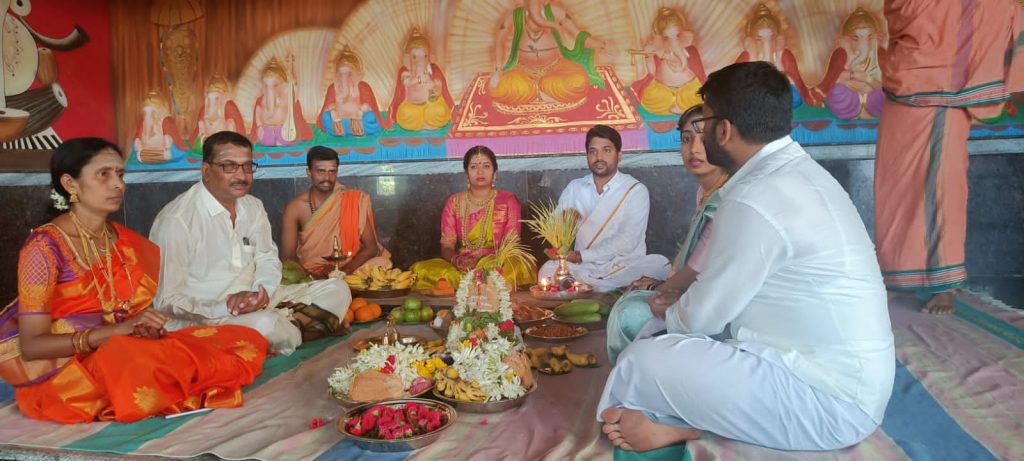 As the rituals began, Dr Yatish’s mother sat next to the idol to complete the occasion.