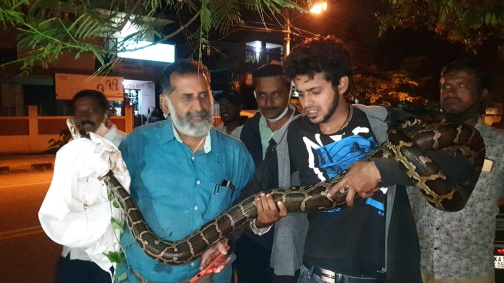 Mysuru: A python was rescued at Kuvempunagar in the city on Saturday night. It was also for the first time...