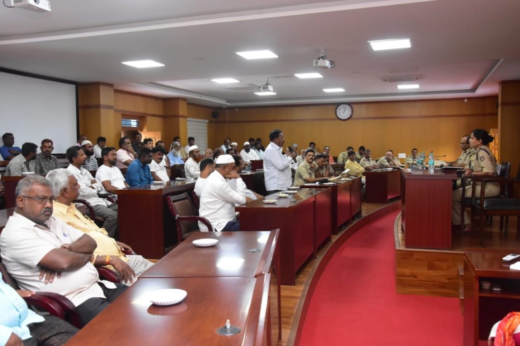 During the meeting, Police Commissioner Ramesh B directed the community members to ensure peace and harmony during the celebrations. He further stated that strict action will be taken against those trying to disturb law and order during the celebrations.