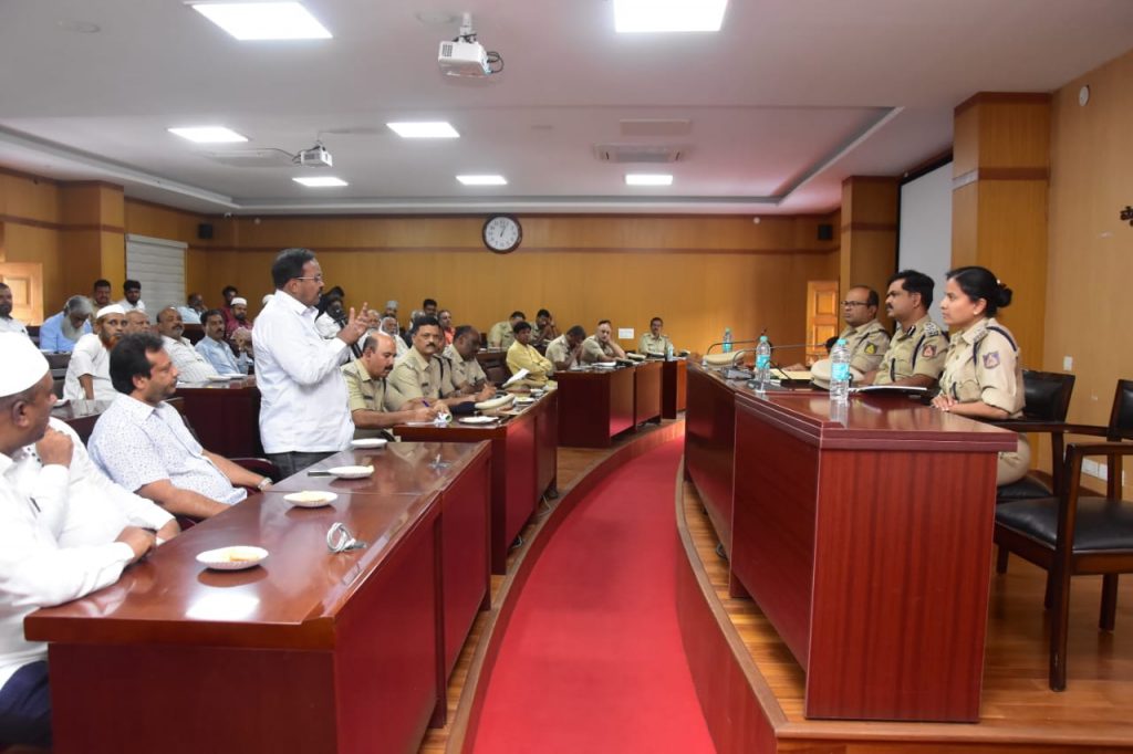 Mysuru: In view of the upcoming Bakrid celebrations, a peace meeting was held with Hindu and Muslim community members at the police Commissioner’s office here on Monday.