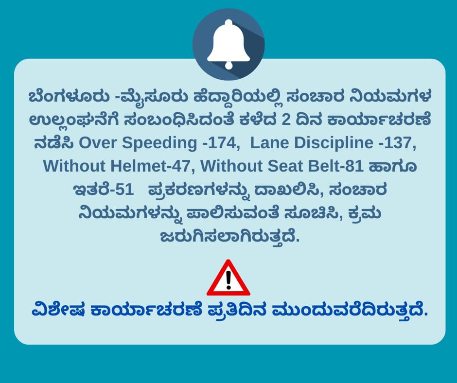 Mysuru: As many as 174 cases of over-speeding have been booked on the Bengaluru-Mysuru Expressway after the mobile speed radar guns were introduced following complaints of repeated incidents of accidents on the stretch, early this week.