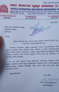AKBMS President K N Venkatnarayan in his letter to Commissioner of State Election Commission Sanjeev Kumar has alleged that ‘the very comments are an insult to Brahmin community that would incite the community further. Moreover it is also in violation of model code of conduct in place in the wake of ongoing parliamentary elections. Hence suitable action should be initiated against the minister’.