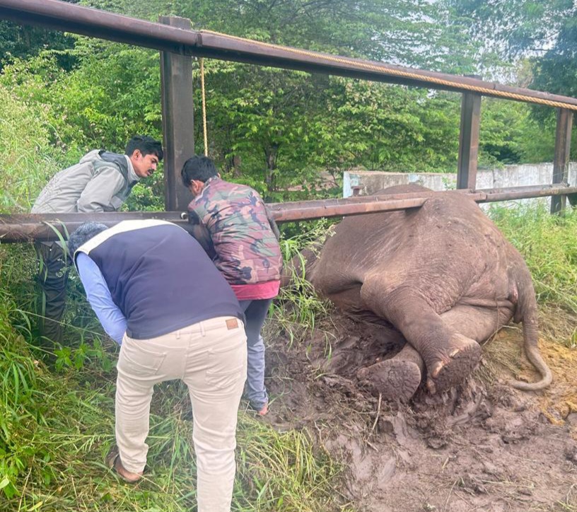 Mysuru: Forest Department personnel at Bandipur Tiger Reserve Forest successfully rescued a 45-year-old elephant, that had been caught under a...