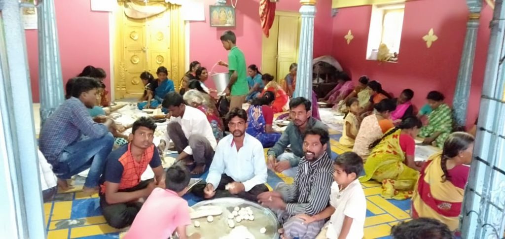 Chamarajanagar: Hundreds of villagers at Duyamkandahalli in Yalandur taluk are rolling chapati for the flood affected people at North Karnataka....