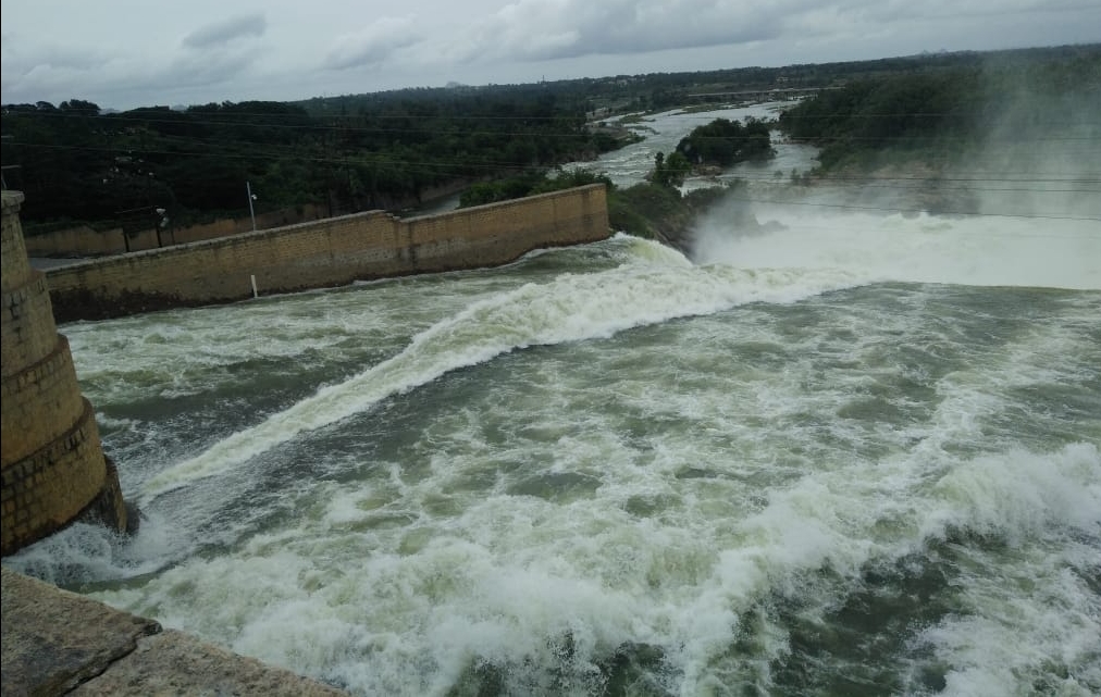 Mandya: Fifty thousand cusecs of water is released from KRS dam to river Cauvery and it may also touch one...