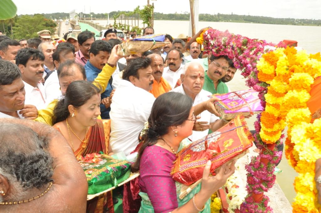 Mandya: Chief Minister B S Yediyurappa and his ministerial colleagues and other elected representatives have offered 20 bagina to river...
