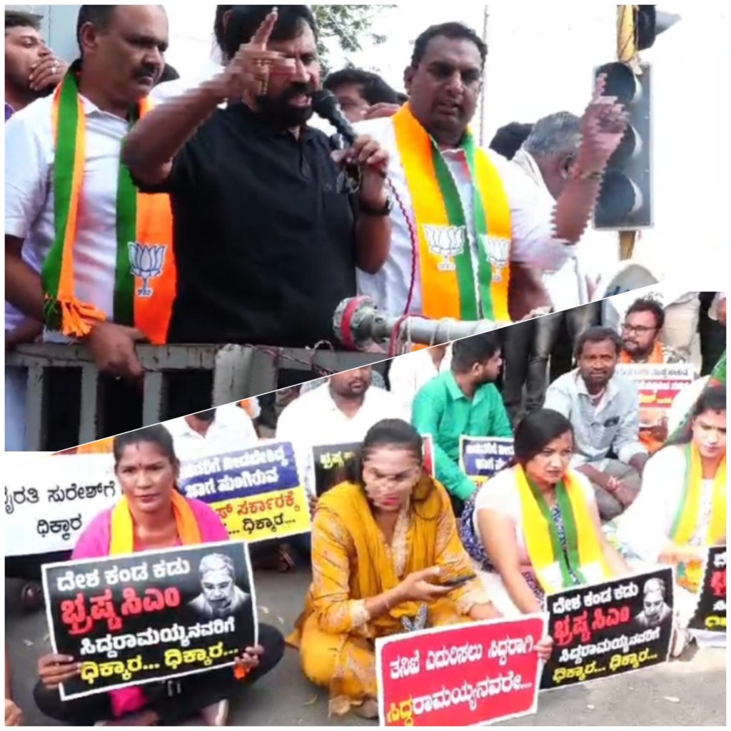 Mysuru: BJP leaders led by MLA T S Srivatsa and City BJP President L Nagendra, staged a protest against Chief...