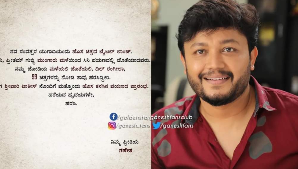 Mysuru: 'Baana Dariyalli' this is the title of Sandalwood 'Golden Star' Ganesh's new cinema, the title of which was launched...