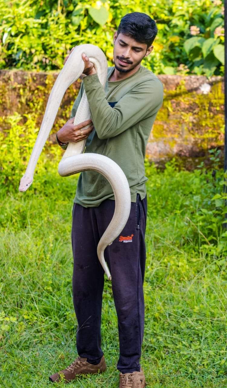 Kumta: A rare albino python that has been rescued at Hegde village in Kumta taluk, Uttar Kannada district on Tuesday...