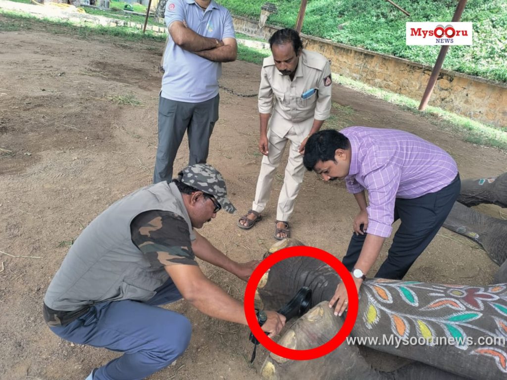 Mysuru: Dasara elephants underwent metal detection to check for any sharp objects in their foot, after the second day of...