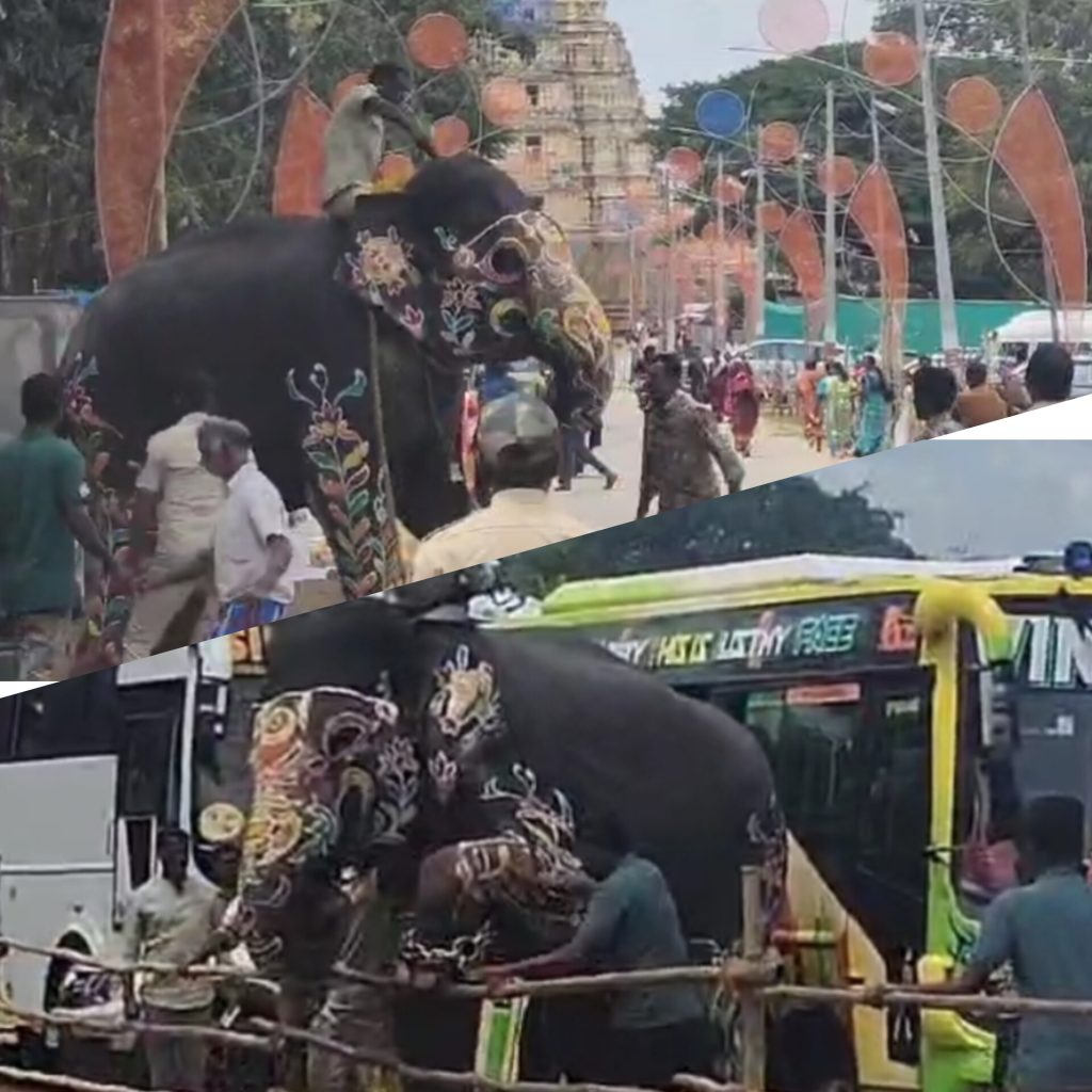Srirangapatna: After a gap of two years, Srirangapatna witnessed tense moments ahead of Dasara, as an elephant ran haywire on...