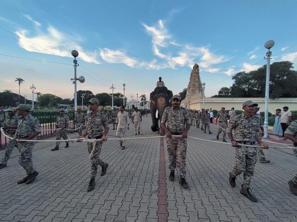 Mysuru: The Elephant Taskforce conducted a day-long workshop at Mysore Palace premises to practice elephant handling challenges during the jamboo...