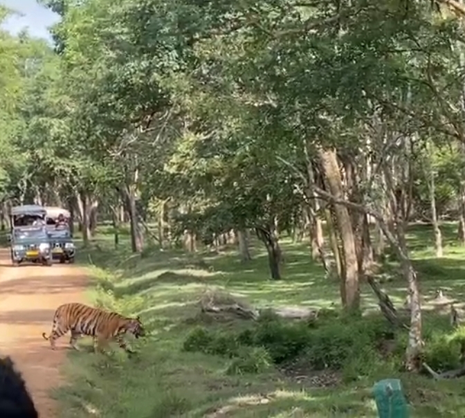 Mysuru: Tourists who went on a morning safari at Dammankatte forest area in H D Kote were thrilled to spot...