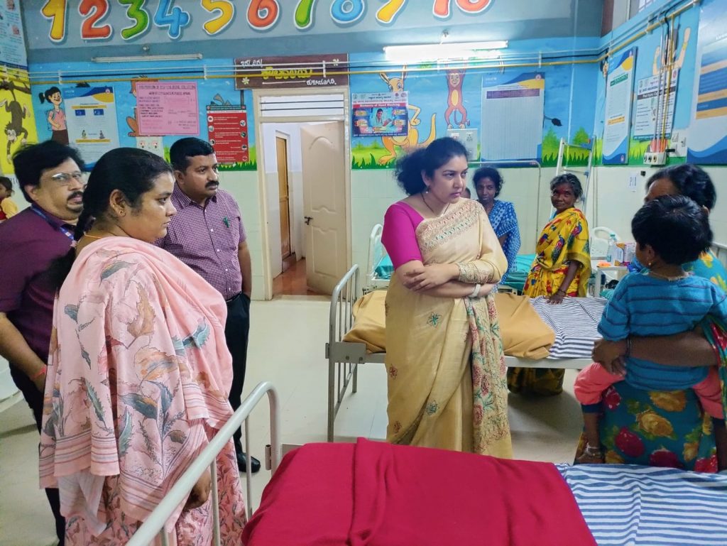 She also made a surprise visit to Women and Child Hospital at B Rachaiah Double Road. She enquired about the health of patients admitted in the hospital and also sought to know the treatment they were being given. She visited NICU unit and took stock of the measures adopted to check malnutrition.