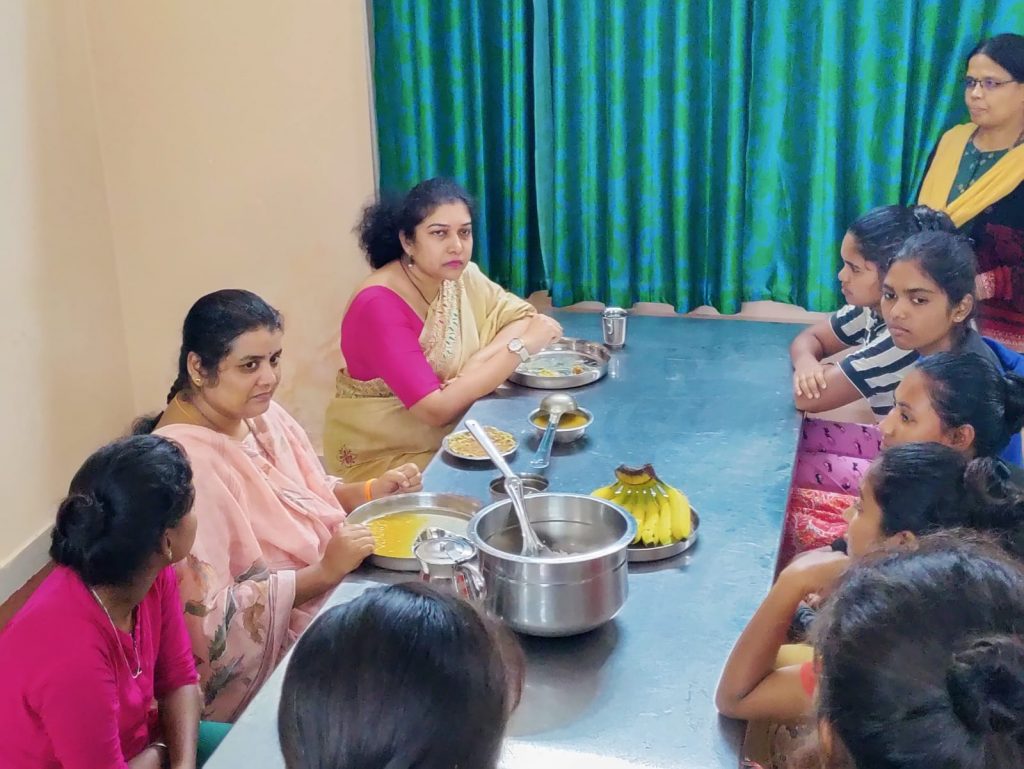 From there, she visited Girls Hostel run by Social Welfare Department. She interacted with the students to know about the facilities provided at the hostel. She also tasted dinner to check quality.