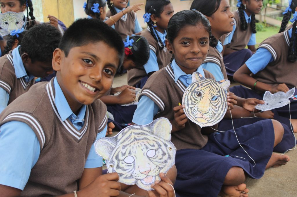The mask making activity was a part of International Tiger Day celebration organised by Srinivasan Services Trust (SST), Social Arm of TVS Motor Company & Sundaram-Clayton & Wildlife Conservation Foundation (WCF) jointly celebrated the International Tiger Day at Higher Primary School in N. Belathuru.