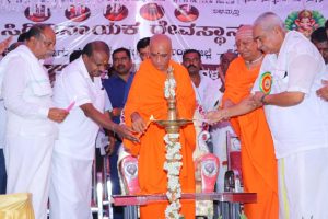 Sri Sri Annadaneshwara Swamiji of Shivagiri, Ramanagara; former MLA Dr. K. Annadani; and village elders were present.