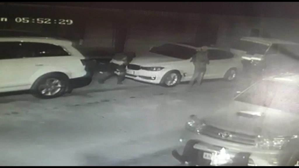 According to the screen shot of the closed circuit TV camera accessed by Mysoorunews.com “A miscreant is seen removing the logo of a BMW car, while another is keeping watch on the left side of the car parked on the road side at Srirampura”.