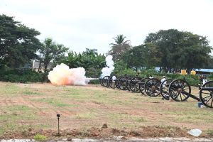The Mysuru City Police’s City Armed Reserve Unit conducted three rehearsals using live gunpowder. The first round of cannon fire practice was completed today, with the second scheduled for September 29th and the final round on October 1.