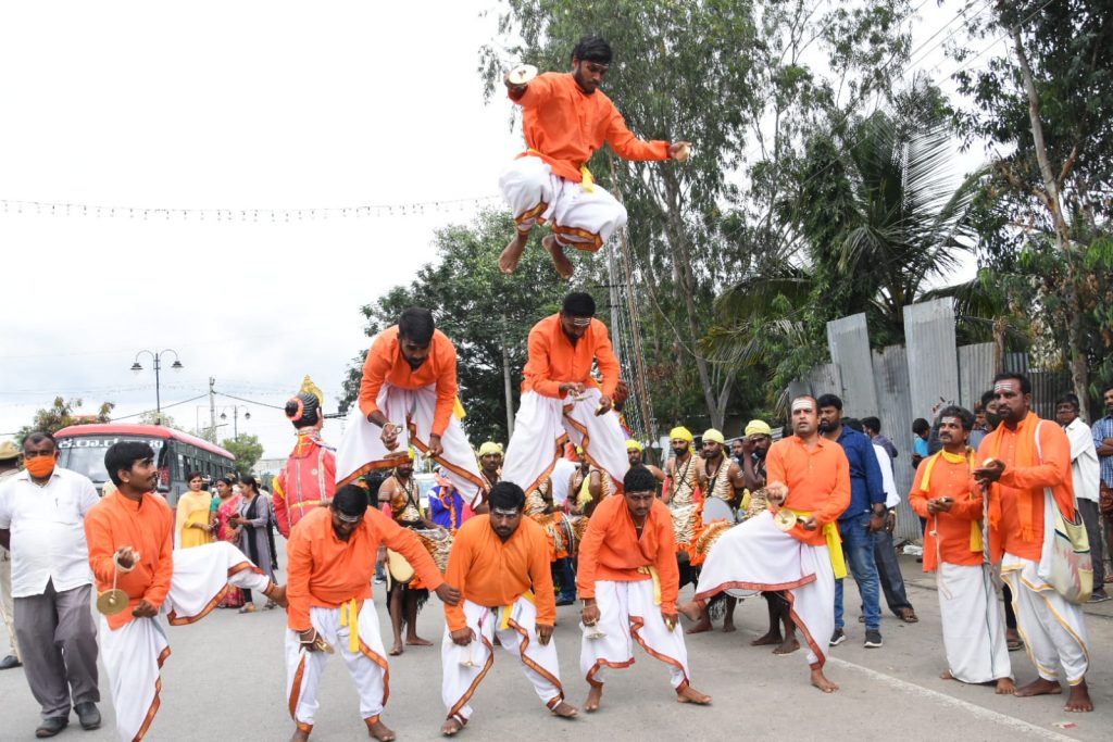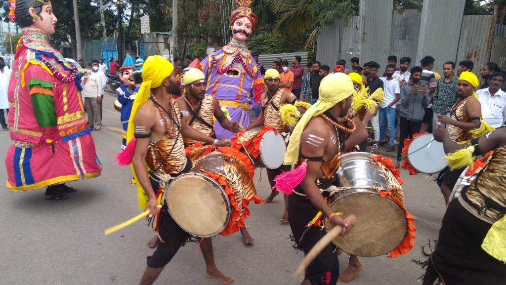 Artistes of various folk troupes like Kamsale, Garudi Kunita, Dollu Kunita and Veeragase performed creating a festive spirit upon the arrival of the chief guest.
