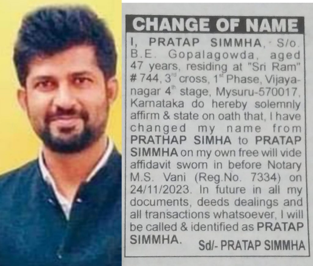 I am ‘Pratap Simmha’, Mysuru- Kodagu MP changes name