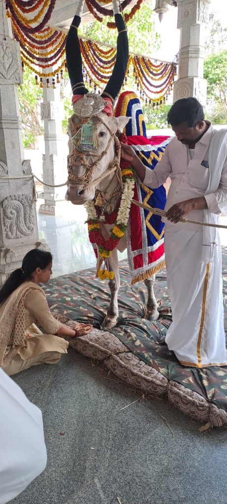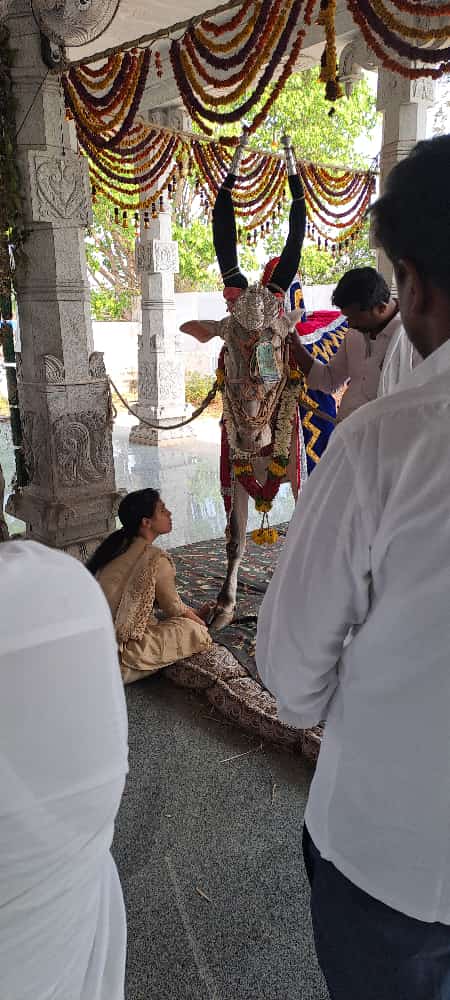 Sindhuri who sat near the foot of the bull, was told about the practice and she offered prayers in her mind, with a vow. The bull raised the leg, to the relief of Rohini Sindhuri who had to wait for 10 minutes.