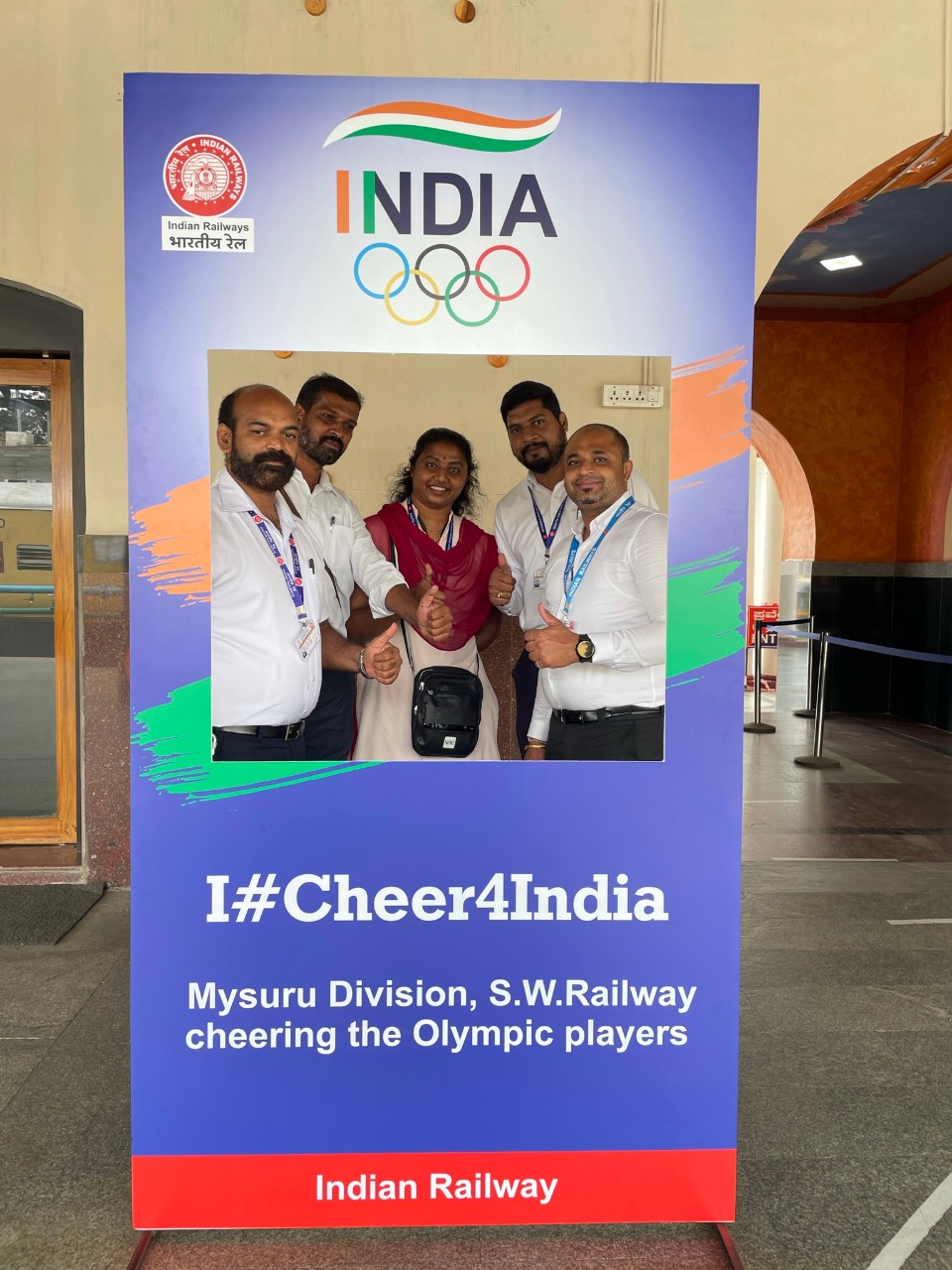 Indian Railways have set Olympic selfie points in various railway stations- at Mysuru, Hassan, Arsikere and Shivamogga Railways stations over different divisions across the country for people to show their support and encourage the Indian contingent participating in Tokyo Olympics.