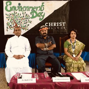 Former Corporator R Balasubramanyam popularly known as ‘ Snake’ Shyam reiterated the slogan in his world environment day address at the college. It was also his special thanks to farmers and soldiers.